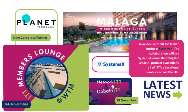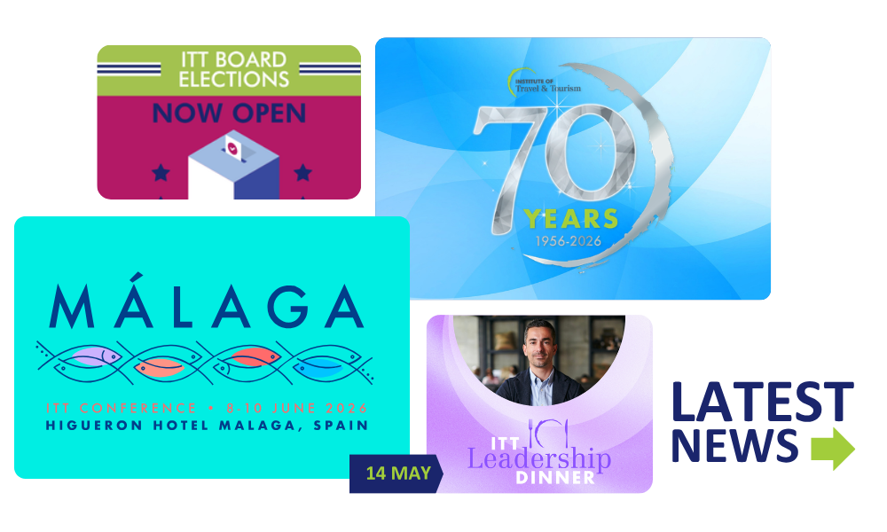 Established in 1956, the Institute of Travel & Tourism (ITT) is the only membership organisation for travel and tourism professionals, suppliers, educators, and students across all sectors of the industry. ITT’s main purpose is to raise and maintain professional standards throughout the travel industry and to provide Members with support and guidance.